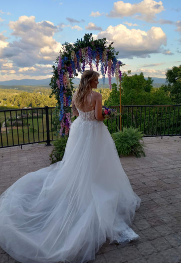 All of our event spaces, patios, porches and overnight stay suites are located close together for your convenience. For example, you could have an outdoor ceremony on the Lower Patio which flows conveniently into a cocktail hour, then step into your reception in the Grand Pavilion, toss a bouquet off an elevated balcony, and retreat to your romantic suite for the night. And every space has a mountain view!